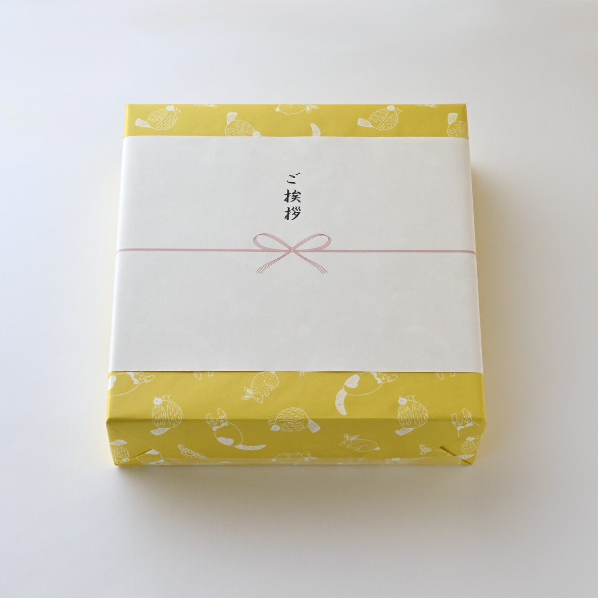 慶事用は写真の包装紙、仏事用は別の包装紙でお包み致します。