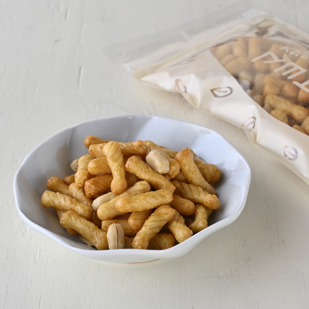 マヨネーズ味のあられと有機ピーナッツを